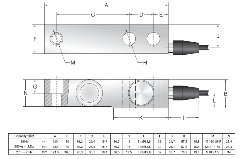 量程可選:250lb,250Kg,500Kg,1t,1.5t,2t,2.5t,5t,7.5t
